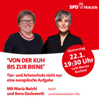 Maria Noichl und Ilona Deckwerth informieren über Tier- und Artenschutz. Mit anschließender Diskussion.